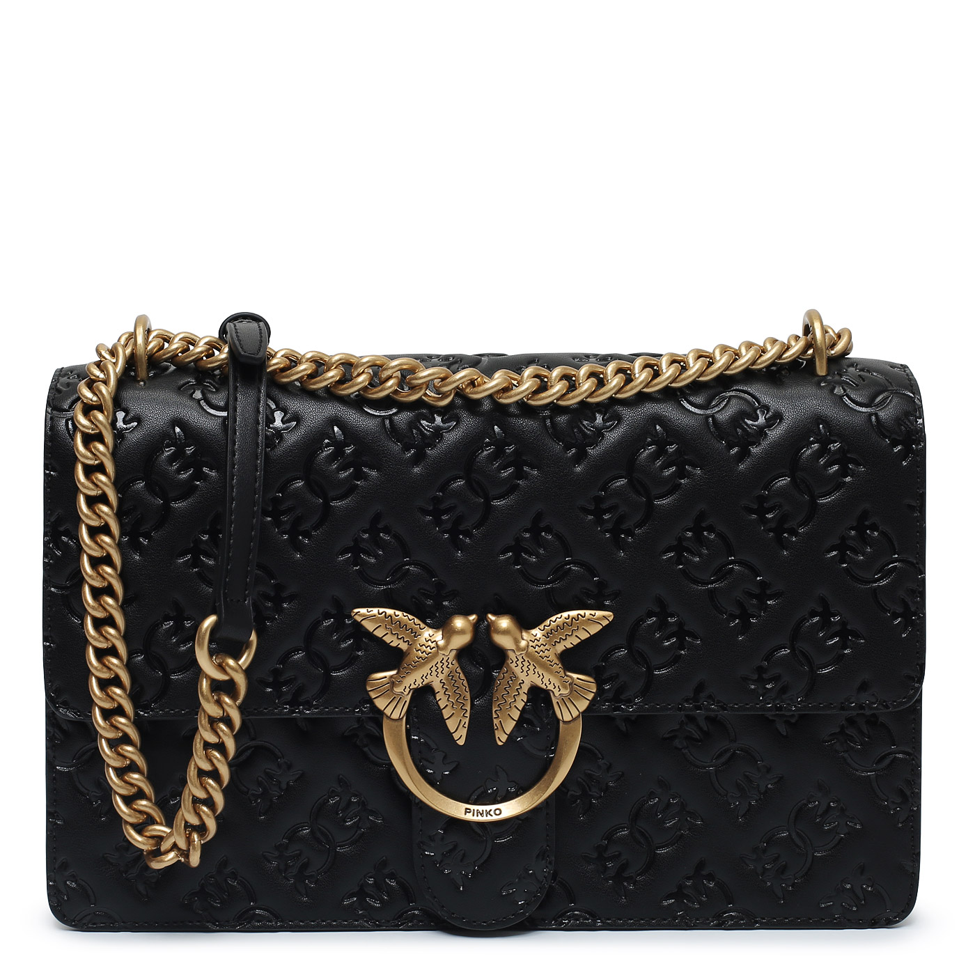 Сумка через плечо с цепочкой Pinko Love One 100941-A1YB/Z99Q_black - 2000558612425 черный натуральная кожа 27 x 16,5 x 7 Цена 32640 руб. купить в интернет-магазине PanChemodan.ru в Санкт-Петербурге