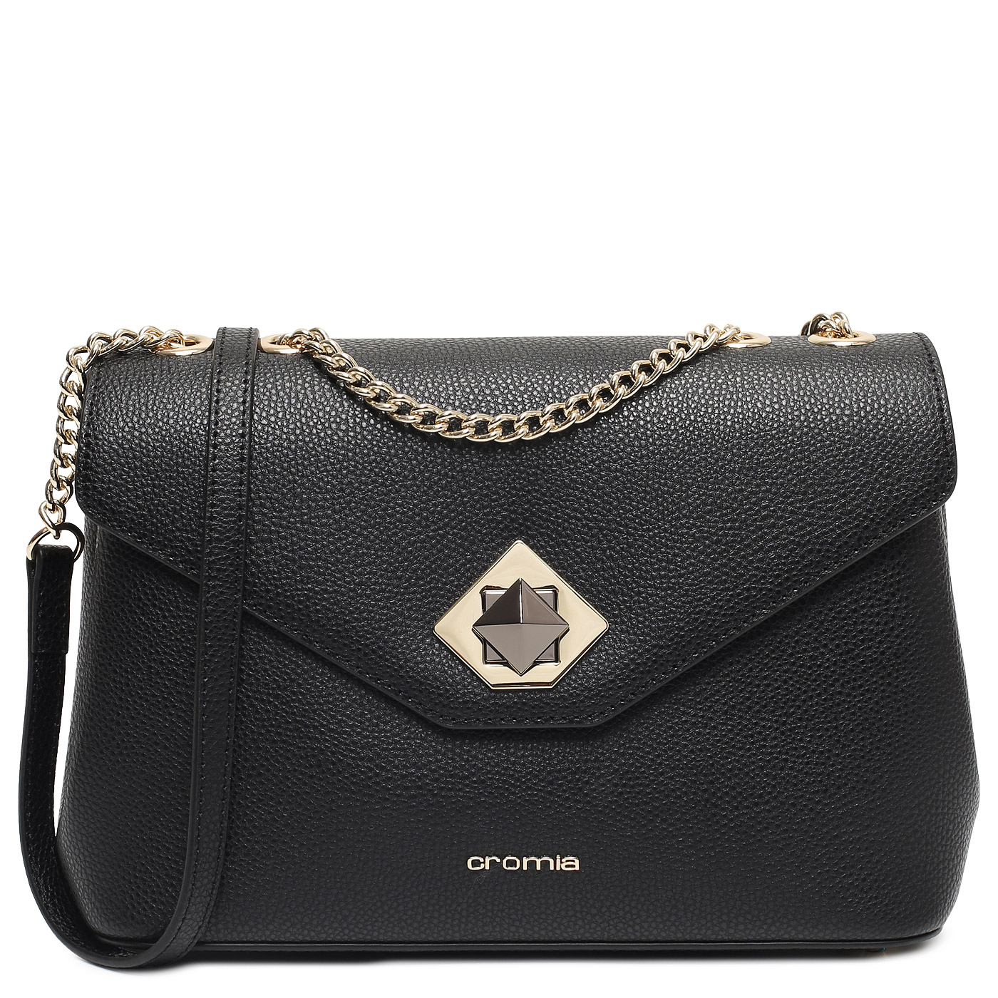 Сумка через плечо с цепочкой Cromia Mina 1405763_nero_pc - 2000558718141 черный натуральная кожа 26,5 x 17,5 x 9,5 Цена 18228 руб. купить в интернет-магазине PanChemodan.ru в Перми