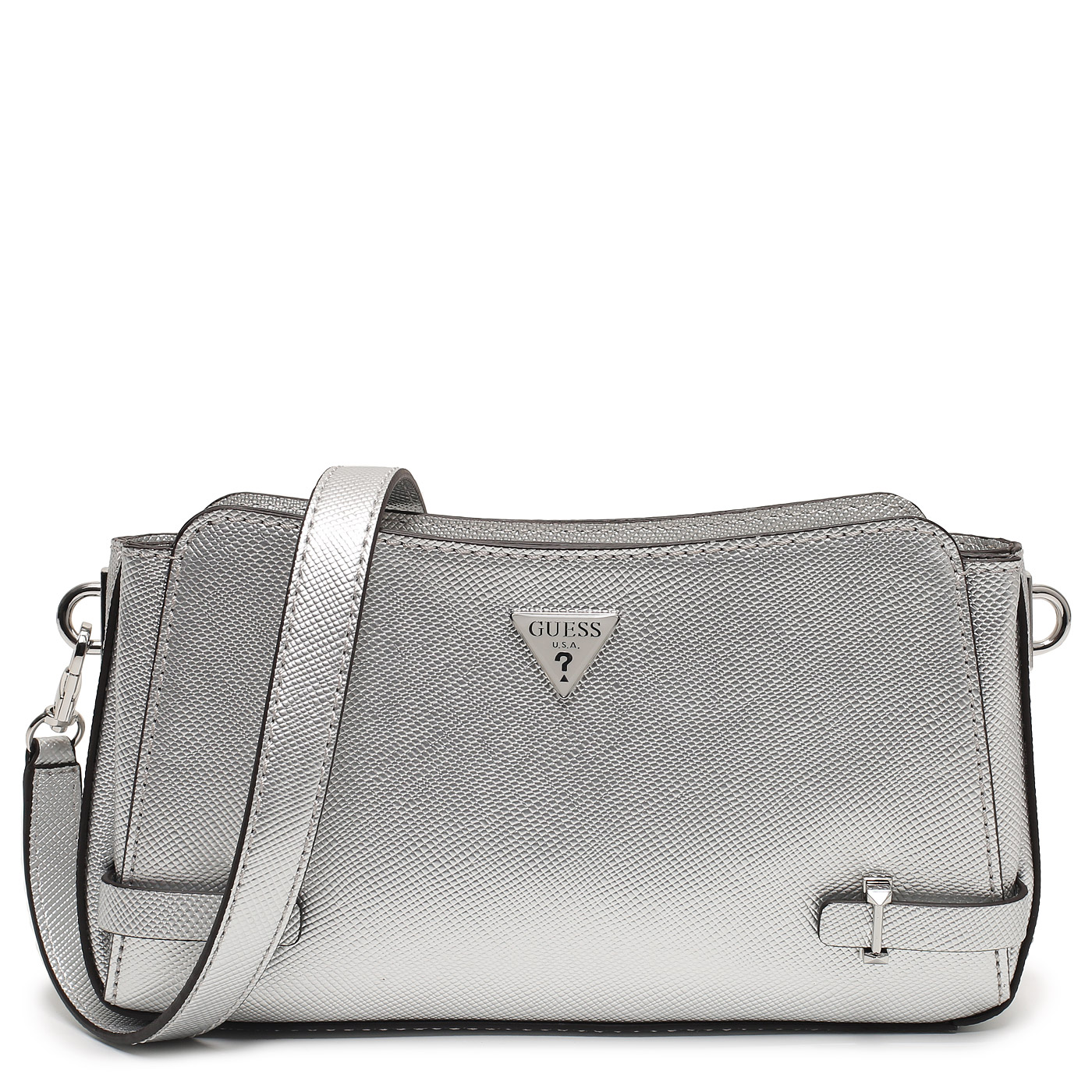 Сумка через плечо Guess Rosalba HWMY96 57120_silver_pc - 2000558780391 серебряный полиуретан 24 x 14 x 4,5 Цена 11100 руб. купить в интернет-магазине PanChemodan.ru в Москве